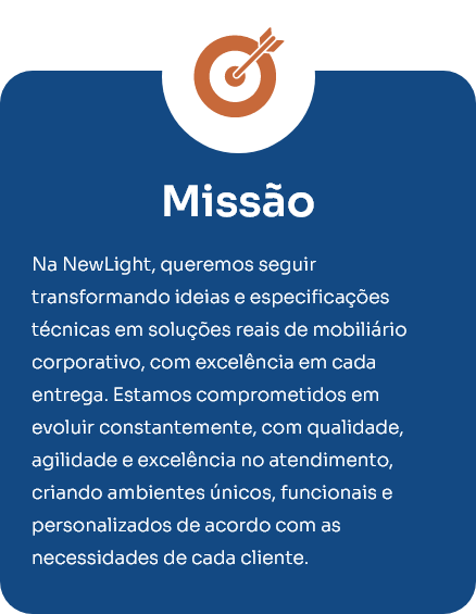 Ao longo de quase 30 anos de história, a VolLight Comunicação Visual acompanhou de perto as transformações do mercado e percebeu uma necessidade crescente por soluções mais completas e integradas. Foi a partir desse olhar atento e da vontade de ir além que nasceu a NewLight Móveis Corporativos — com o propósito de entregar projetos Turn-Key que unem comunicação visual e mobiliário corporativo, criando ambientes funcionais, acolhedores e prontos para atender às reais necessidades de cada cliente.